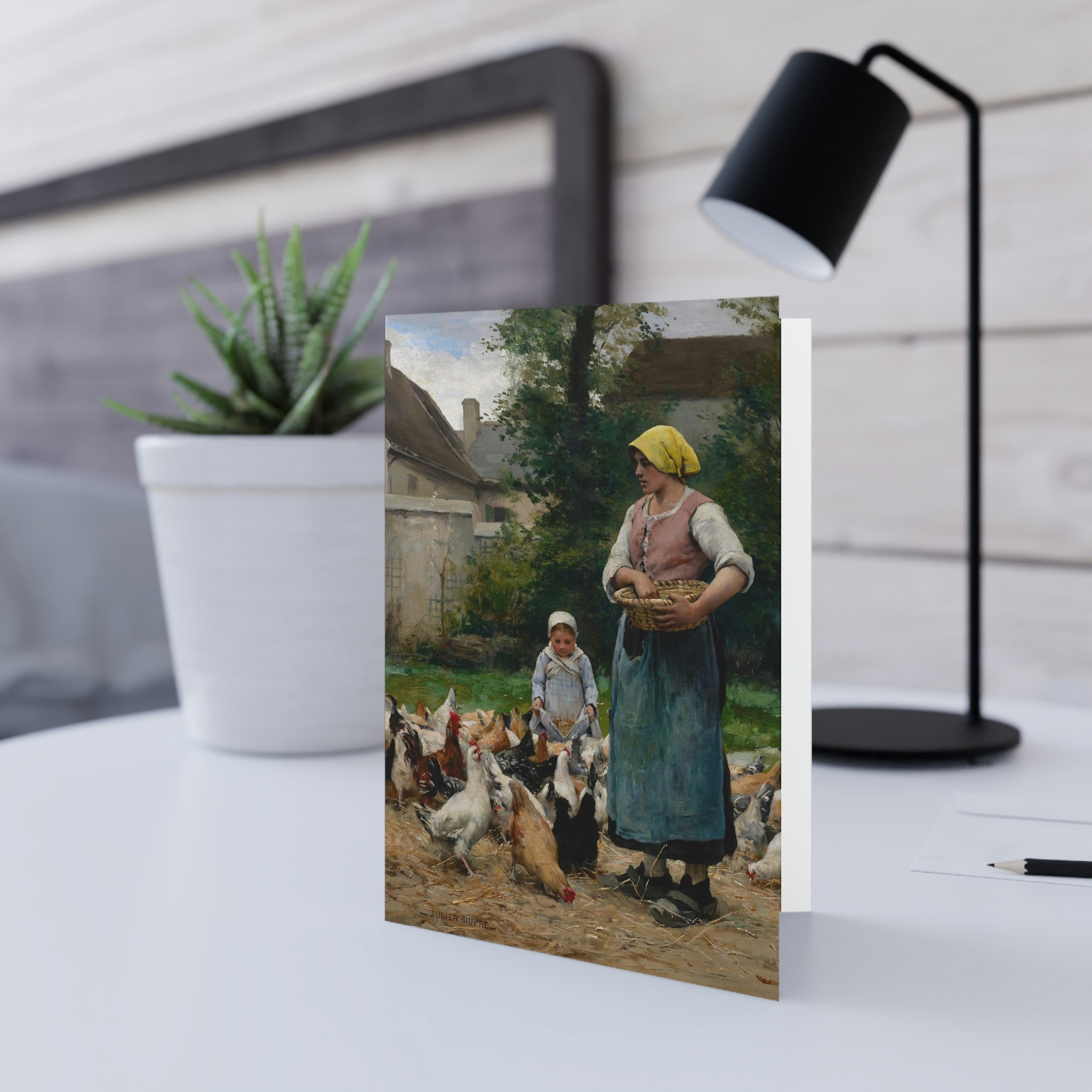 Julien Dupre: "Femme avec des poules" - Folded Greeting Cards